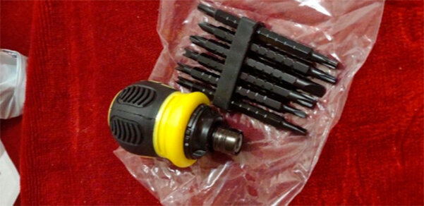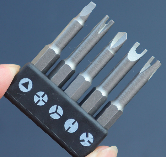 Инструмент, который включает в себя набор двухсторонних бит различного профиля, благодаря чему отвёртка будет полезной для работы с винтами различных типов шлицов (включая спецшлицы).