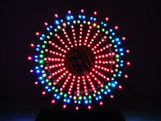 После сборки конструкции, установки двигателя и стоек, у вас получится красивый светодиодный светильник у которого присутствует 16 программ.