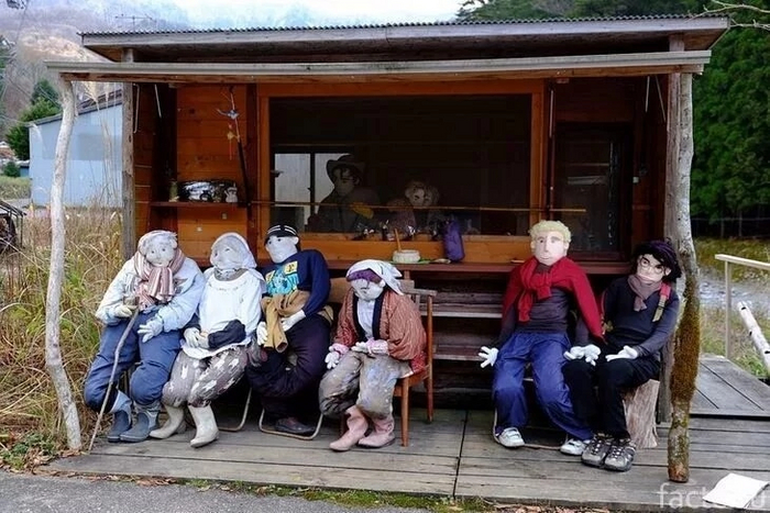 Говорят, что этих кукол больше, чем жителей в деревне, в десять раз. Куклы, напоминающие пугала, можно найти в классах, в центре города, у ручья, внутри ратуши – они буквально повсюду. Аяно начала проект потому, что хотела избавиться от чувства пустоты, которое она испытывала каждый раз, когда смотрела на постепенно отмирающую деревню.