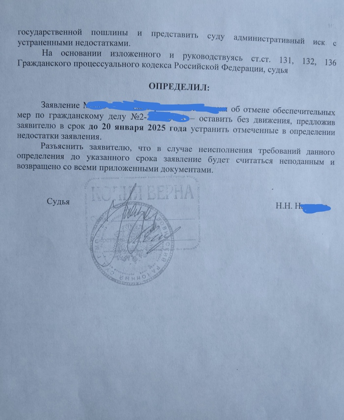 Через много времени, звонков и выяснений по поводу заявления от суда было получено определение (прилагаю).