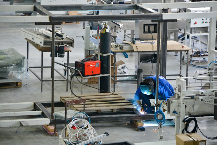 Далее элементы корпуса конвейера соединяются с помощью сварки и отправляются на порошковую покраску, если транспортер изготавливается из углеродистой стали. Если же конвейерная линия выполнена из нержавеющей стали, что востребовано в пищевой промышленности, то все сварные швы проходят этап электрохимической обработки.