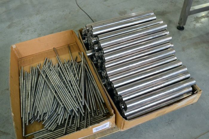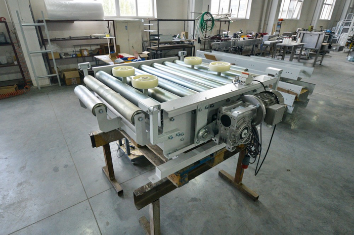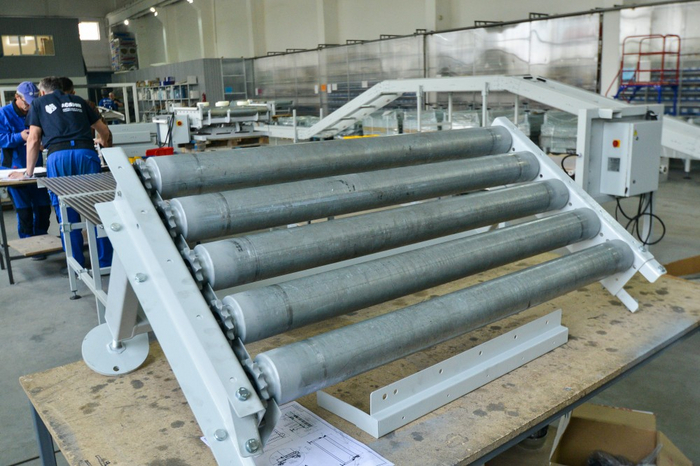 Некоторые элементы будущего конвейера, такие как: транспортерные ленты, цепи, направляющие, шкивы, звезды, ремни и мотор-редукторы закупаются у поставщиков завода в готовом виде. Здесь в цеху находится большой склад со всевозможными деталями для разных видов конвейеров.