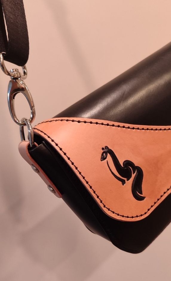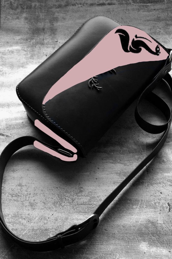 К тому же заказчику хотелось сумку пыльно-розового цвета или близких к нему оттенков, а это для натуральной кожи не всегда плюс, потому что такая сумка с ручным тиснением и росписью может порядком мараться, поэтому был предложен вариант сделать вставку и элементы в цвете, а саму сумку черной.