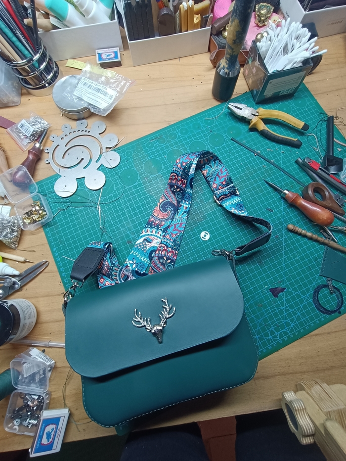 Если кто внимательно читал начало, сумок было две, но вторая это повтор, и она дважды тут уже была, поэтому добавлю только одно фото с результатом, наша звезда и любимица пикабу - её величество, сумка с оленем😁 и вот тут ее чуть-чуть было)