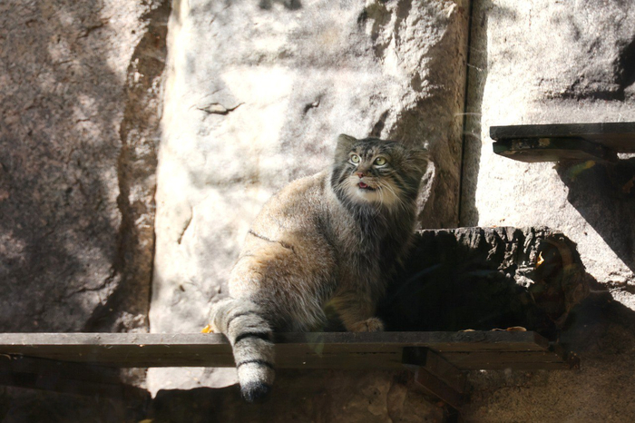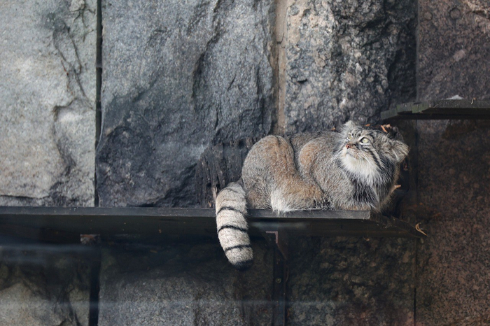 Наблюдал сегодня за зажировкой манула Тимофея. Увидев камеру, Тимофей отлип от драматически наигранного созерцания осеннего неба у стены и, к восторгу поклонников, величаво подбрёл экстремально близко. Погрозил лапкой, нагло повернулся ко всем бесподобной жопой. Посидел с минутку, удостоверился, что все правильно поняли его посыл, ну и рассмотрели, да и снова отправился на свою стену. Бесподобная скотинка, конечно