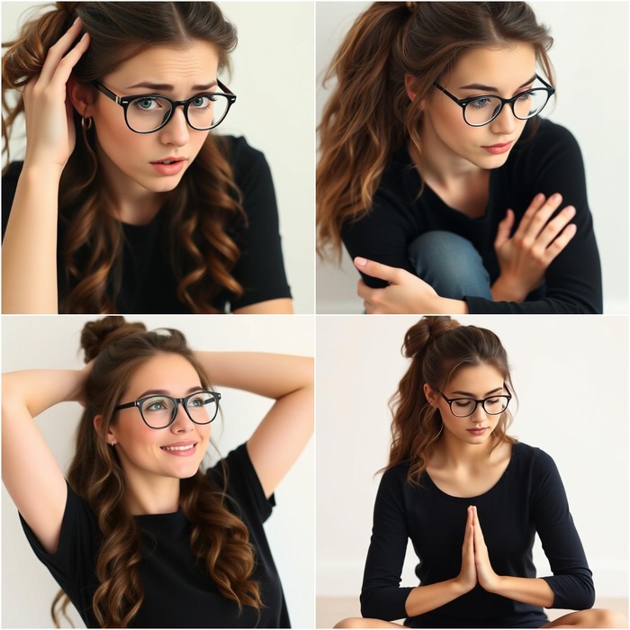 Используя этот простой алгоритм, вы можете создать целую фотосессию с разными образами модели всего за несколько минут. Например, я создал около 20 изображений, меняя позы, ракурсы и эмоции. Вот несколько примеров.