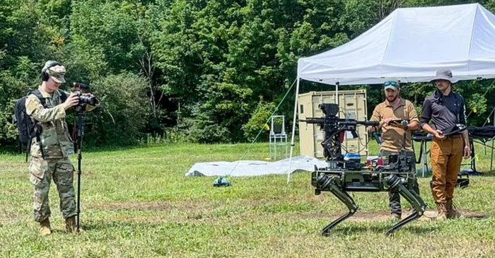 Армия США тестирует робота-собаку «Lone Wolf» (Одинокий волк) с искусственным интеллектом. На спине у собаки винтовка AR-15/M16