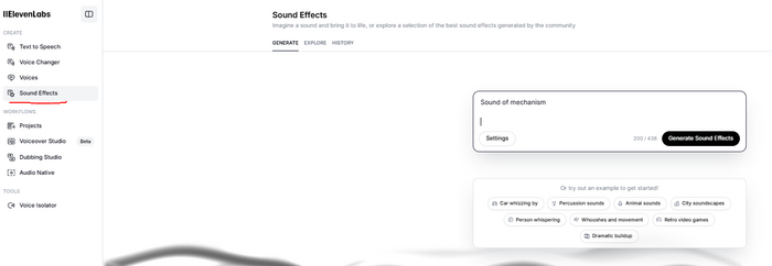 В общем, тут я однозначно рекомендую ElevenLabs, там есть функция генерации звуковых эффектов до 20 секунд длительностью и примерно 70% звуков в моем видео, сделаны именно там.