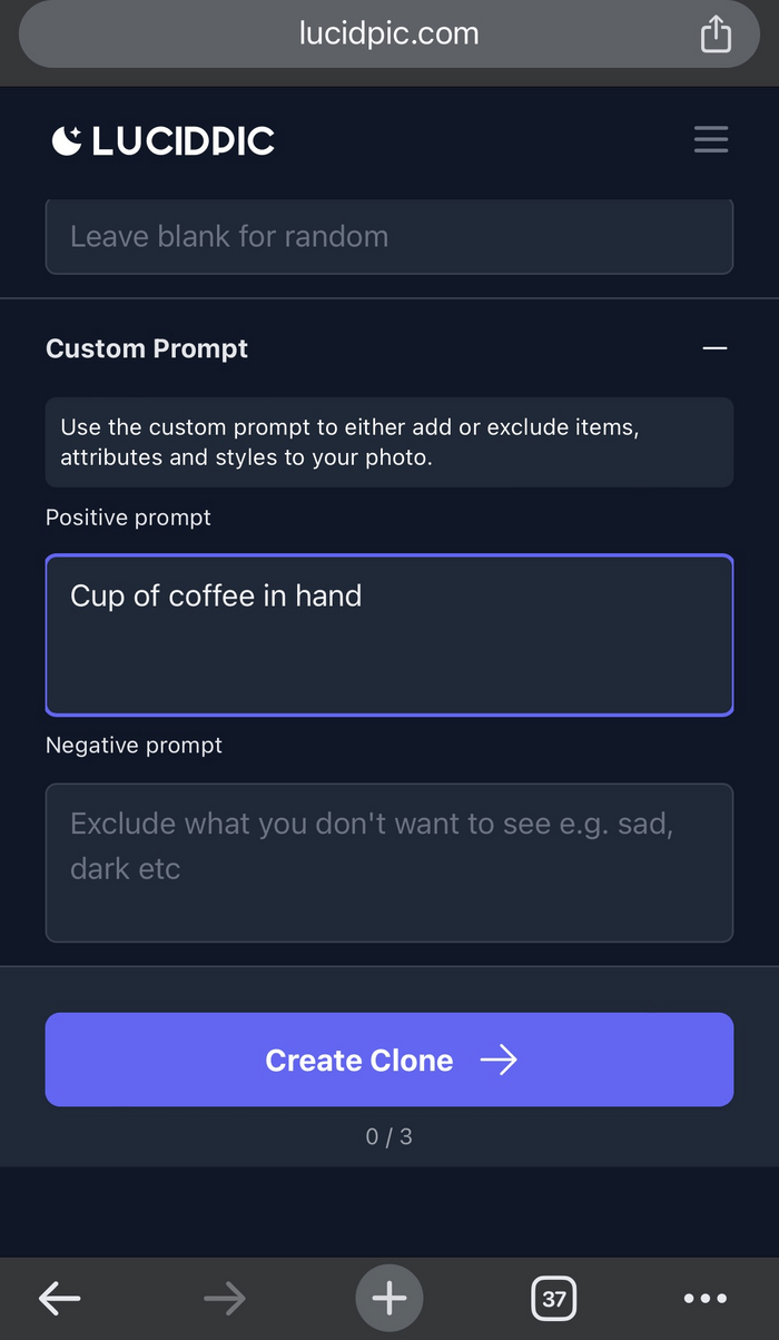 И при необходимости ещё добавляете свой промпт. Просто для того, чтобы протестировать я добавил «чашку кофе в руке».