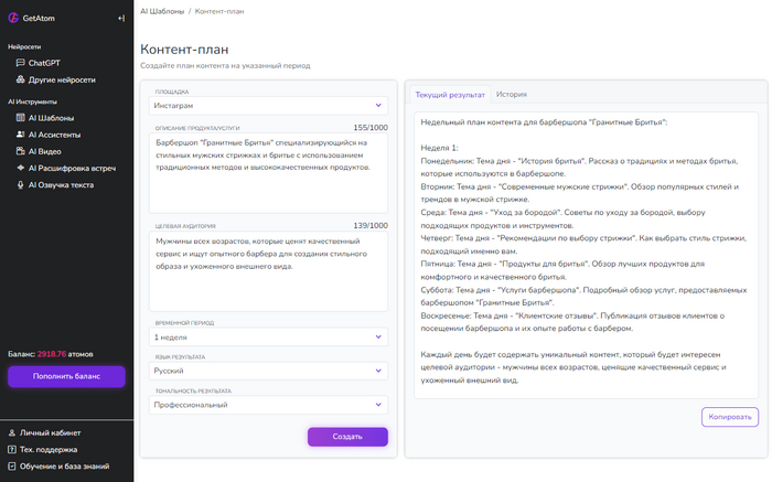 Если у вас есть необходимость в создании контента - наш сервис к вашим услугам.