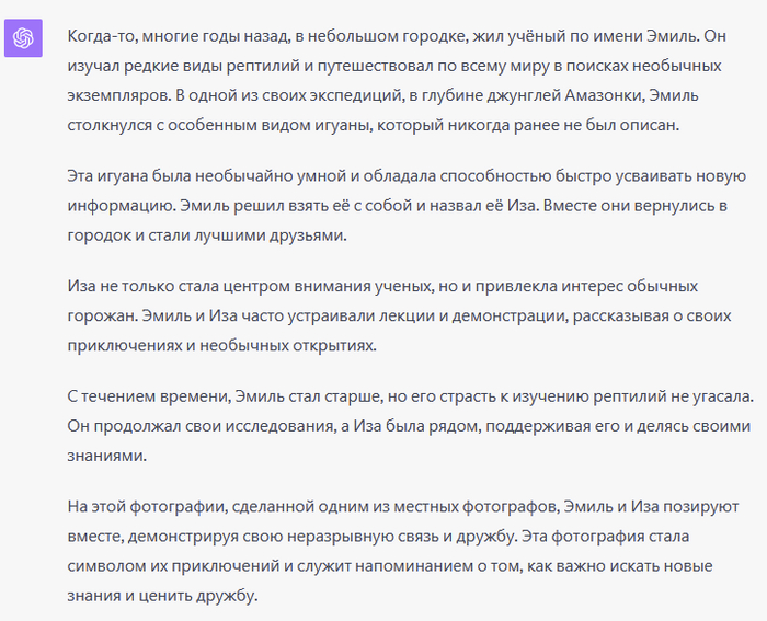 Вот какую историю придумал chatGPT на основе этой фотографии. Интересно, что он как-то определил, что Дроздов ученый.