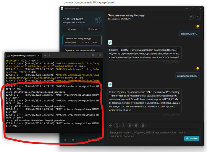 Использование API для ChatGPT дает нам расширение возможностей работы с ним: переводчик текста, персональный помощник, работа с документами, кастомные клиент и многое другое. Чтобы получить ко всему этому доступ, нам понадобится - актуальная версия моего форка FreeGPT c Github, и поддержка установки кастомного endpoint (openai api) сервера со стороны нужной нам программы. О том, как работает FreeGPT я рассказывал в самом само первом посте, связанным с проектом: ChatGPT-4 и ChatGPT-3.5 в 1 клик на вашем ПК. Работает без VPN