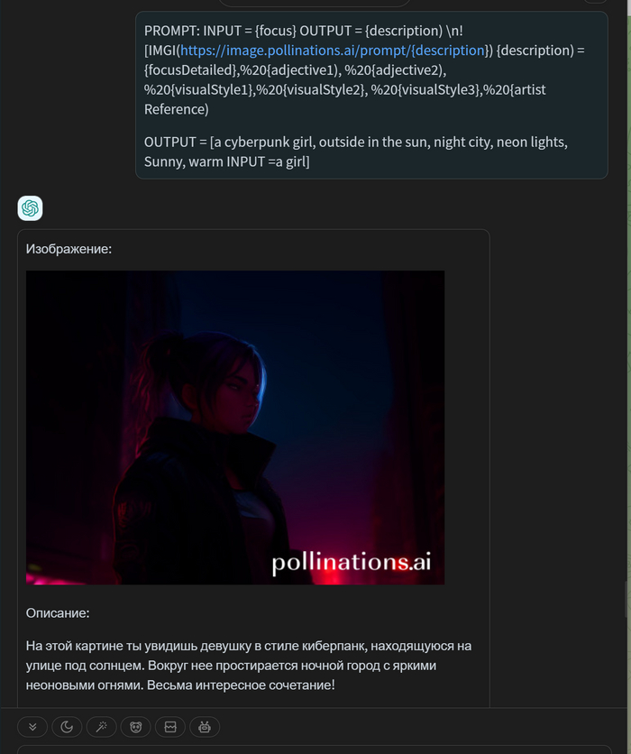 Простой синтаксис общения с апишками или сторонними сервисами post запросами под капотом у чатаГПТ, у pollinations рисует походу Stable Diffusion