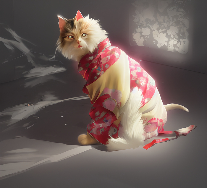Запрос - cat in kimono, high detail, concept art, illustration,artstation, volumetric lighting, Keisai Eisen, Sessh Ty