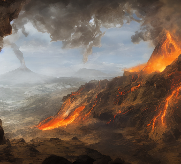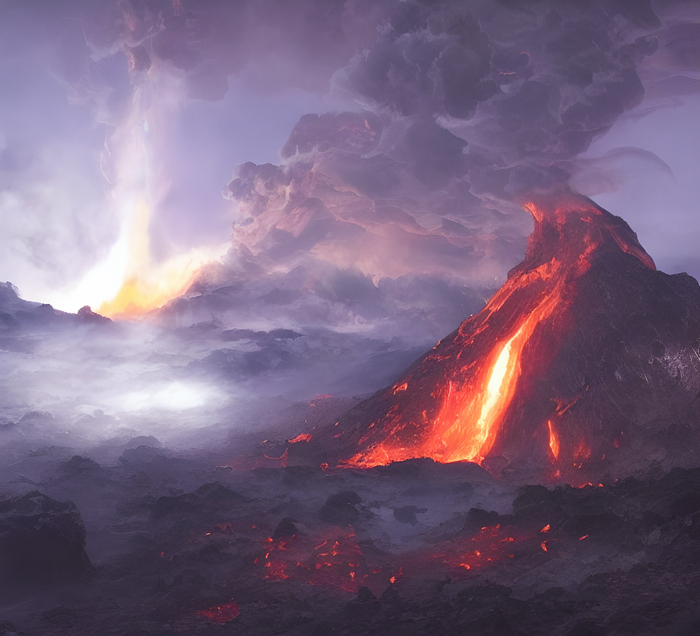 Запрос - volcano eruption, lava flows, ash, island, concept art, 3d concept, high detail, artistic rendering, shadow lighting, raphael lacoste, alexandre cabanel, thomas moran, huang guangjian, rhads