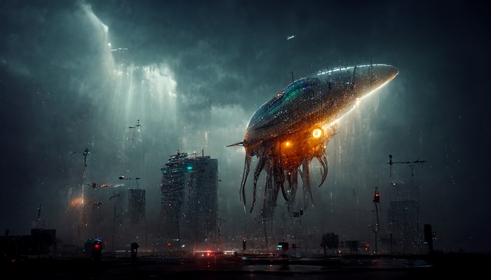Вот так нейросеть Disco diffusion увидела песни группы Nautilus Pompilius.