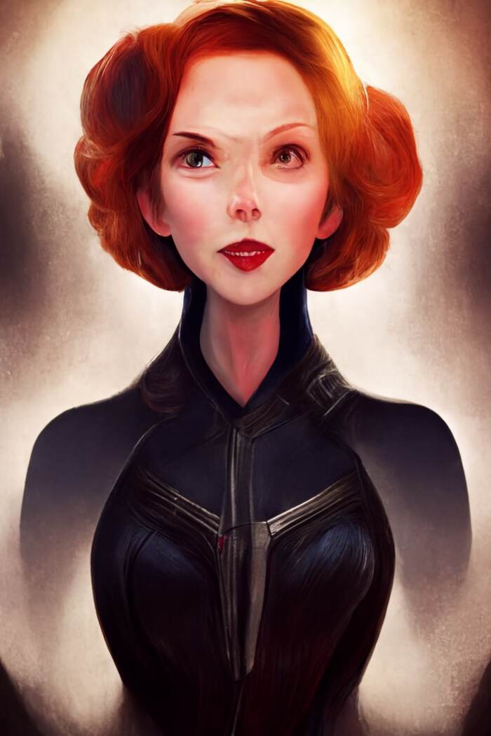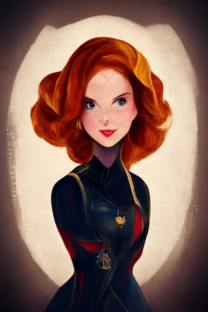 The "black widow from Avengers", portrait :: cartoon, in the style of Disney :: --ar 5:7 --test --uplight