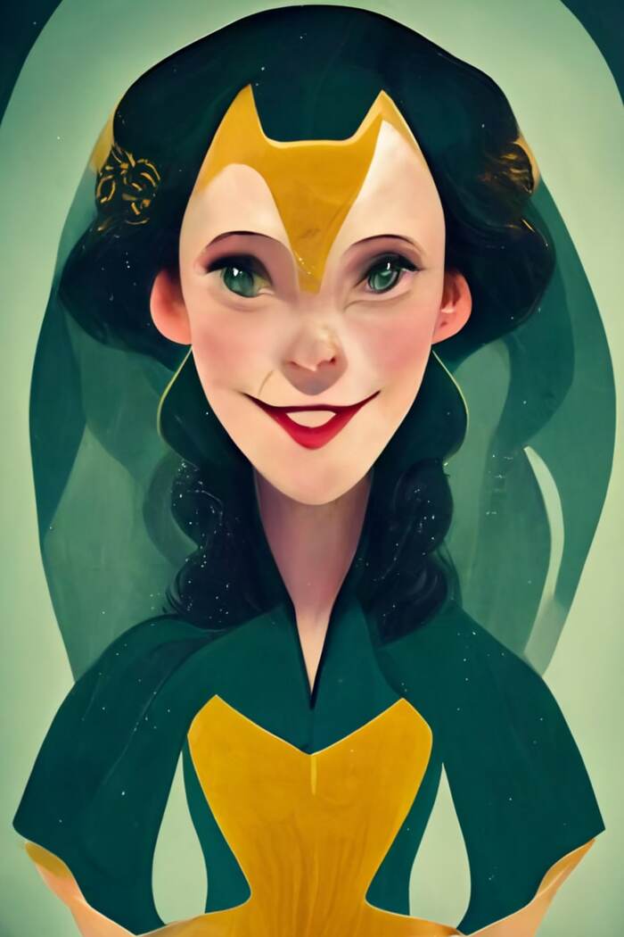 The "Loki from Avengers" princess, portrait :: cartoon, in the style of Disney :: --ar 5:7 --test --uplight