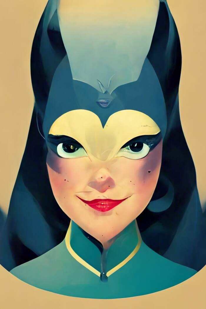 The "Batman from Avengers" princess, portrait :: cartoon, in the style of Disney :: --ar 5:7 --test --uplight