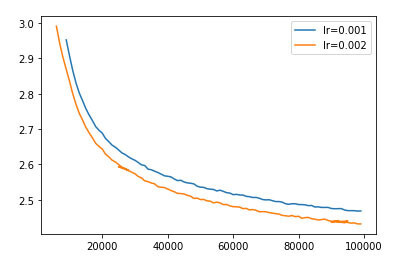 2. Уменьшение lr часто приводит к замедлению обучения. Например, здесь уменьшение lr в два раза привело к замедлению на 30%: