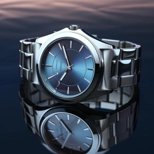 Промпт: extreme close up shot of a futuristic smartwatch, high-tech studio lighting, sleek and metallic colors, futuristic