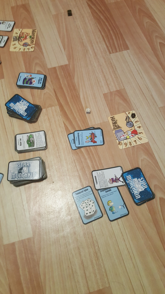 Но так как в Бэнг на троих играть было не очень удобно (хотя Шта очень честно пыталась выполнять роль бандита, то есть ненавидела всех на кресле), я полезла в еще неразобранные ящики, искать Манчкин.