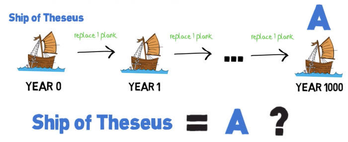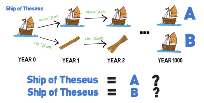 Если корабль не чинили, и все доски в нём остались теми же самыми, что и были, но теперь на нём не совершают паломничество на остров Делос, а используют в качестве магазина по продаже мороженного, тот же это корабль или нет?