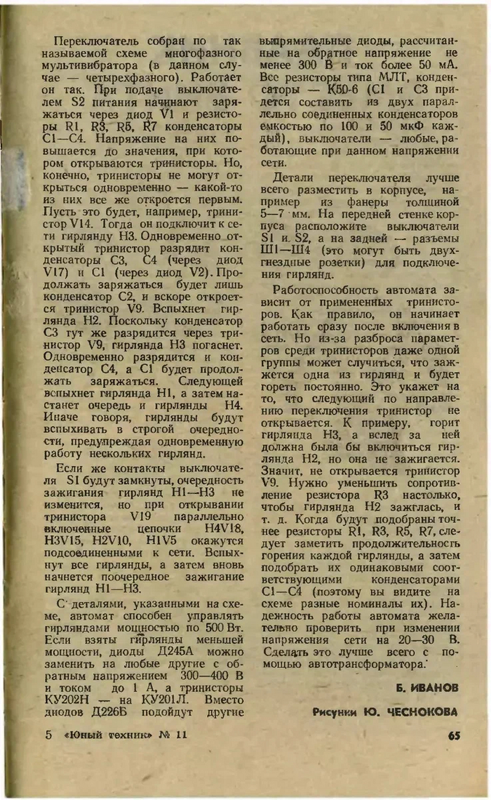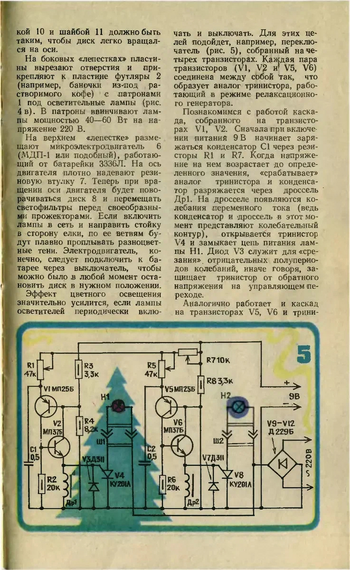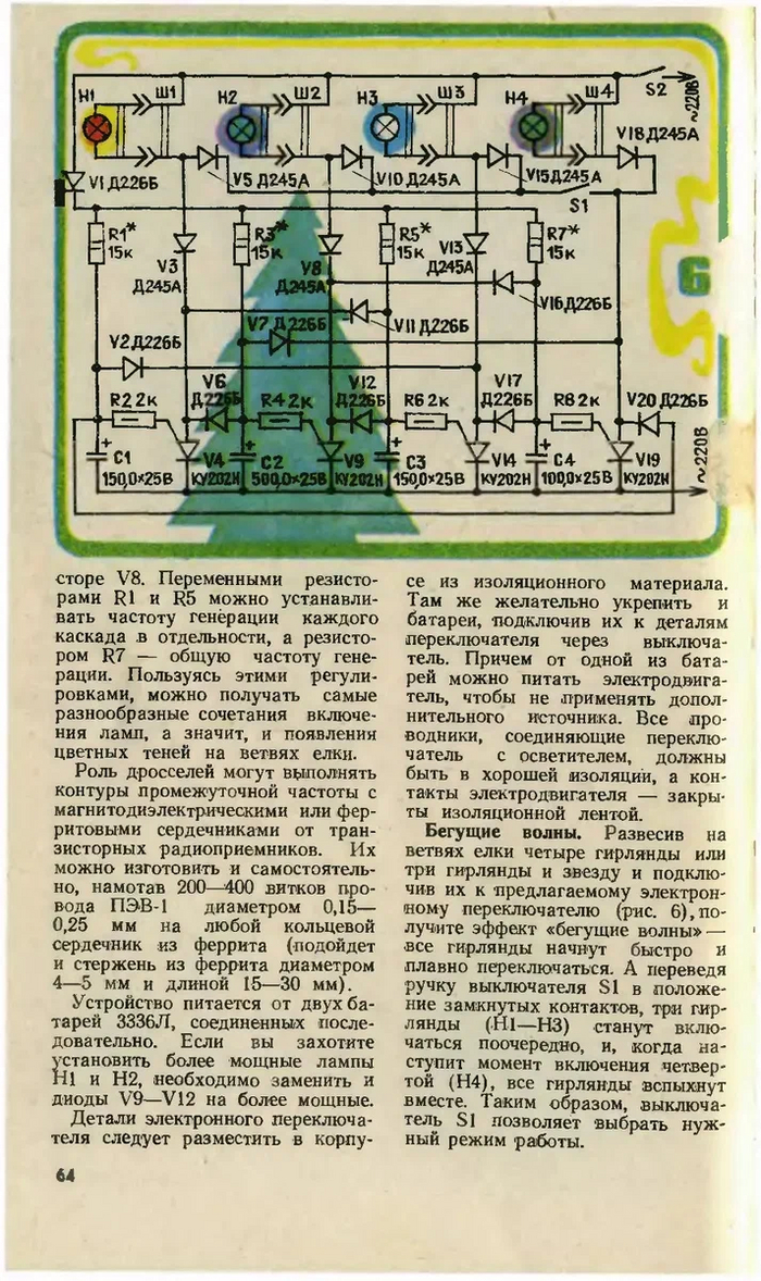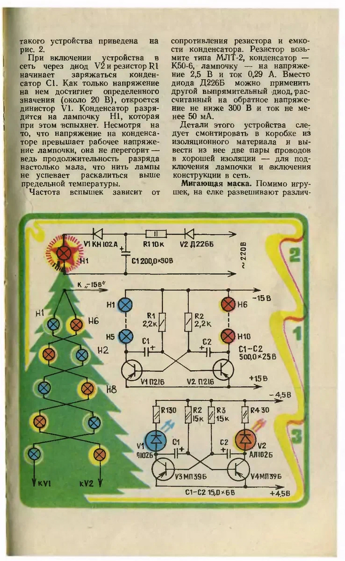 В начале 80х с радиодеталями стало проще, да и цену снизили в разы. Те же тиристоры КУ202 уже десятками выписывали в посылторге. Вот и ждали мы 11 номер журнала "Радио", "Юный техник", "Умелые руки", потому что именно в ноябрьском номере печатались схемы новогодних поделок.