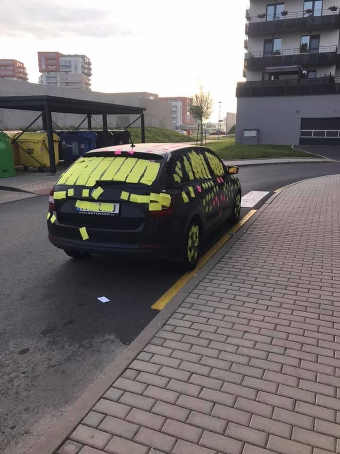 Неизвестный блюститель порядка обклеил автомобиль нарушителя разноцветной бумагой для заметок, а также оставил краткое текстовое послание: «Как ты паркуешься, корова» (Jak to parkuješ, krávo).