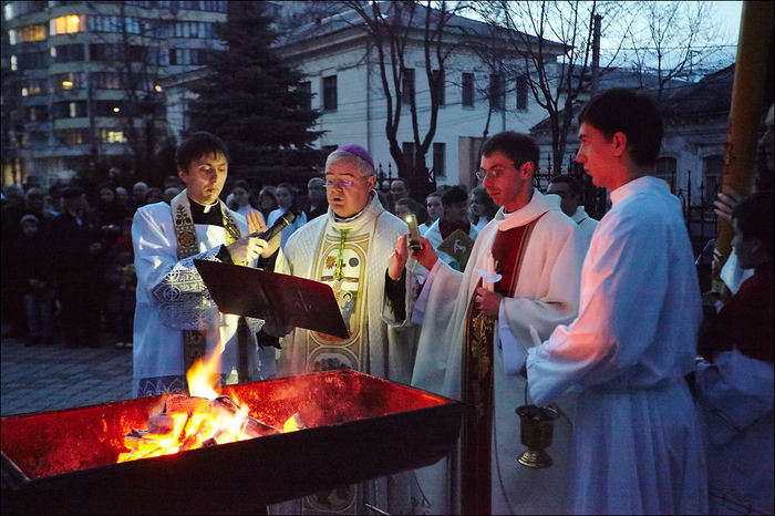 Сегодня в ночь у католиков Пасха. То есть, сама она завтра, но этим вечером главное пасхальное богослужение — Навечерие Пасхи.