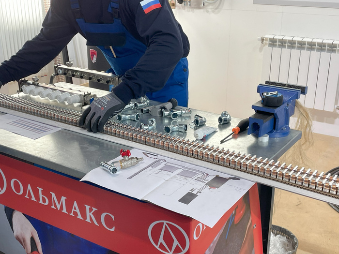Этот чемпионат уже четвертый, а номинация «Монтаж автономной системы отопления» для монтажников, проводимая АПРО (Ассоциация производителей на рынке отопления) в этом году, состоялась впервые. После всех отборочных этапов в финал вышли пять команд, в каждой – по два участника. Главное задание – за два дня смонтировать систему отопления и проверить ее на давление. В систему входили: секционные и трубчатые радиаторы Rifar, стальные панельные радиаторы «Лемакс», теплый плинтус «Текникс» (да, довольно редкое решение для отопления помещений), бойлеры Federica Bugatti и многое другое. Уплотнительные материалы для резьбы – лен и паста Aquaflax nano (опять же, российского производства).