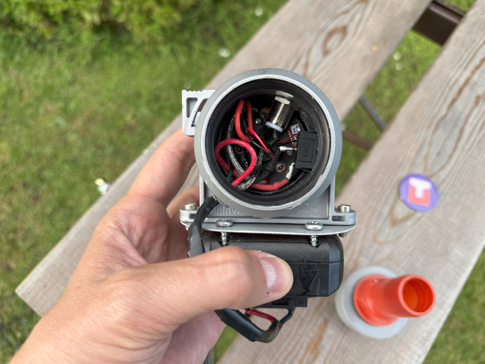 Мотор располагается внутри, разместился он там идеально! Как родной! 120 Вт. Такого более чем хватает для самых разных задач в хозяйстве.
