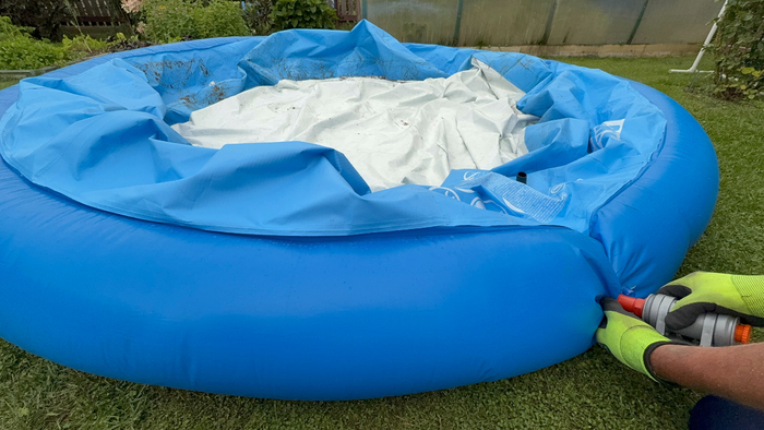 Что можно надуть таким насосом? Хотя бы вот такой довольно большой бассейн, который стоит у нас на даче.