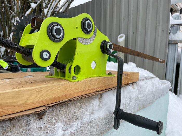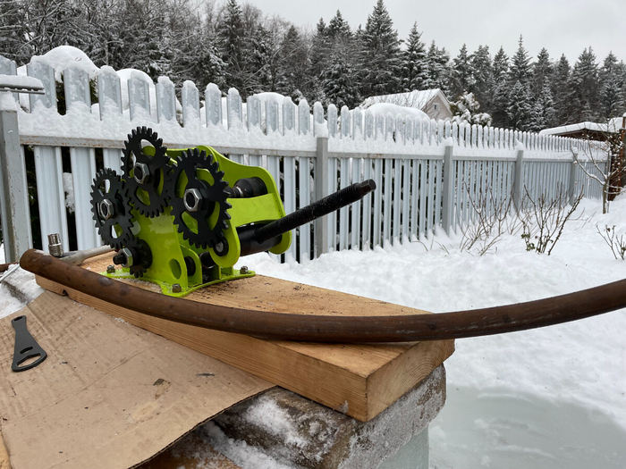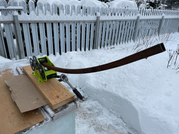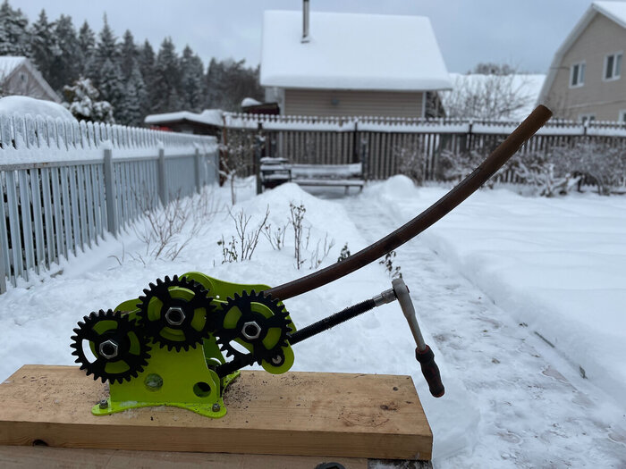 Некоторое время ко мне приехал очень интересный трубогиб; опробовал его в боевых условиях на даче. Легкий морозец, солнышко, красота!