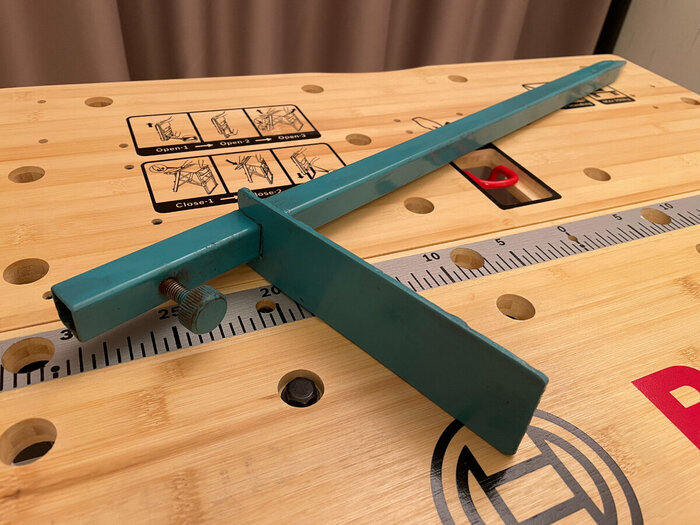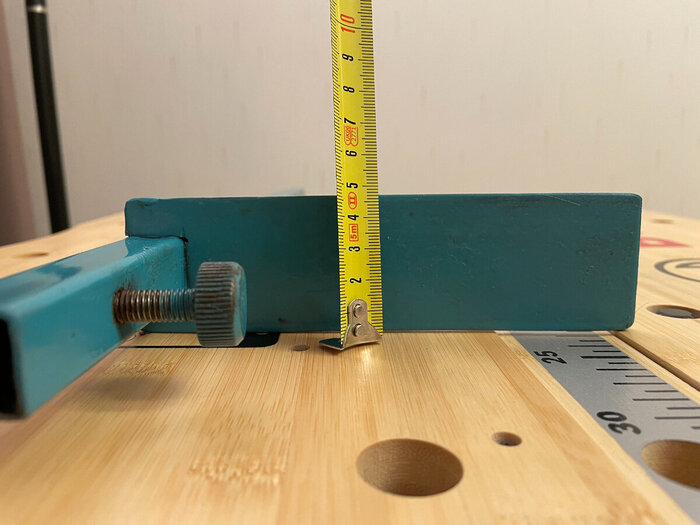 До Kreg ему еще очень далеко (как до неба), но довольно интересная модель. Есть два положения по высоте, на видео - стоит в самом высоком. Отверстий под упоры надо бы побольше, конечно, ребра жесткости нужны помощнее (даже для складного), хорошо бы, конечно, всякие специальные струбцины... Но с учетом того, что Kreg сейчас у нас в стране не купить, то на безрыбье и этот верстак - рыба.