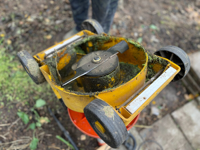 Конечно, хорошо бы еще сделать каркас для работы газонокосилки в перевернутом виде. Но это дело времени.