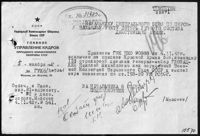 Арестован, а затем и расстрелян командир 118-й стрелковой дивизии 41-го корпуса генерал-майор Н. М. Гловацкий. Николай Михайлович родом из города Гродно, ныне Белоруссия. Кавалер трёх орденов. Реабилитирован.
