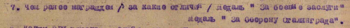 В приказе, в пункте 7 говорится, что до этой медали были ещё две награды: "За боевые заслуги" и "За оборону Сталинграда". Получается, что на гимнастёрке первая медаль, полученная до 25 августа 1944-го. Однако это порождает ещё один вопрос – выходит, что фото было сделано в промежутке между Сталинградской битвой и августом 1944-го.