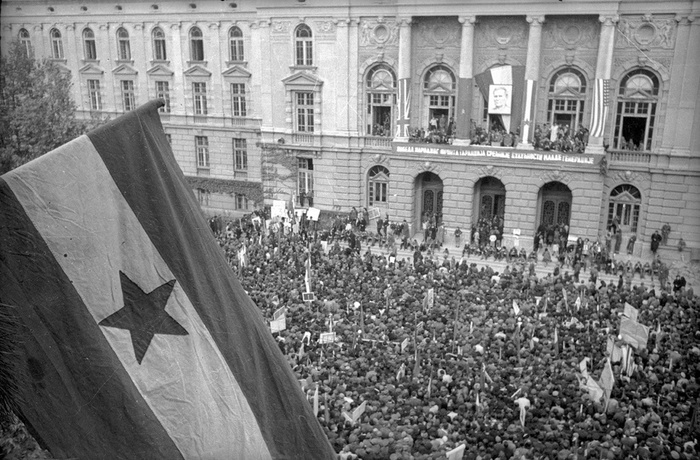 Демонстранты приветствуют первое правительство новой Румынии. Дата съемки: 1945 год