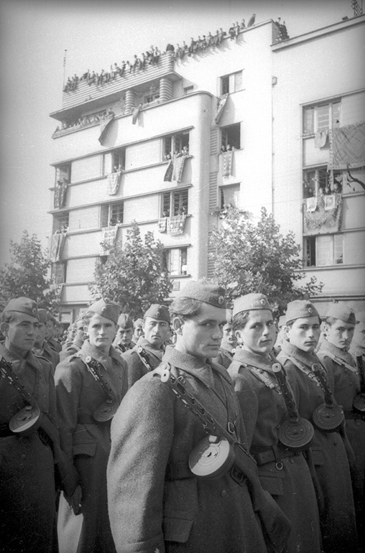 Бойцы югославской армии на параде. Дата съемки: 1945 год