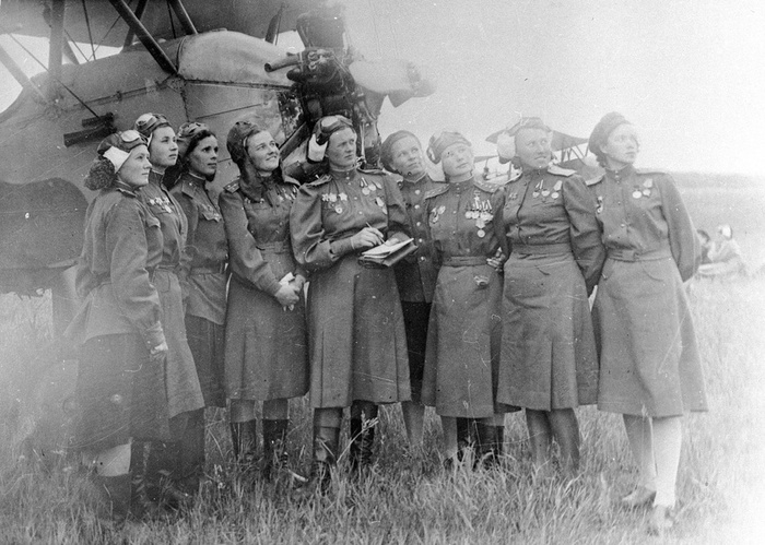 Летчицы 46-го гвардейского авиационного полка. Дата съемки: 1945 год