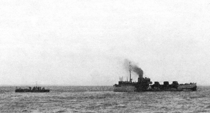 Необходимо отметить, что когда баржа затонула и люди плавали в воде, показался неприятельский самолет, который сбросив 6 бомб, упавших в 80-ти м., полетел дальше.