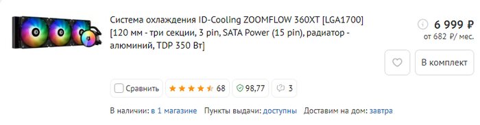 В общем решился я на обновление ПК. Решил брать процессор последнего поколения, тоже i5. А именно i5 13600kf. МП я тоже решил взять хорошую, на Z чипсете, чтобы я мог использовать весь потенциал процессора с маркировкой "K". Под эту пьянку пришлось взять водяное охлаждение, да не самое лучше, но норм, на 240мм с хорошими отзывами. И даже такое охлаждение стоит заметно дороже воздушного. (видеокарту решил позже поменять и пока оставить 1060)