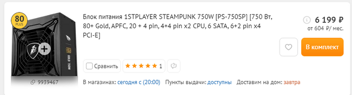 Чтобы все работало стабильно, нужен хороший БП, ведь при разгоне потребление возрастает.6200 руб.