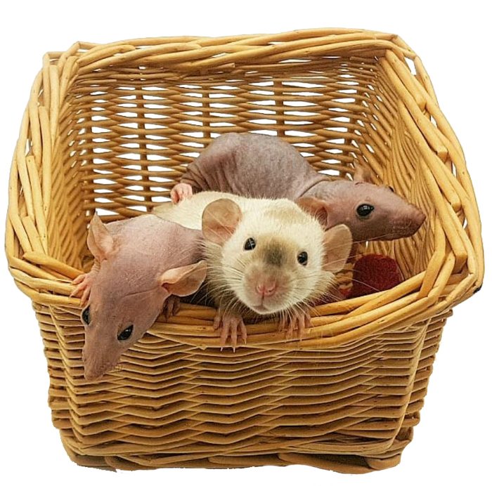 С 2013 года у нас жили голенькие крысы. Первая пара - Дуся и Раечка, потом тоже голенькие Нюша с Чуней, а с ними уже появилась третья - кучерявая голубая Жучка, похожая на медвежонка.