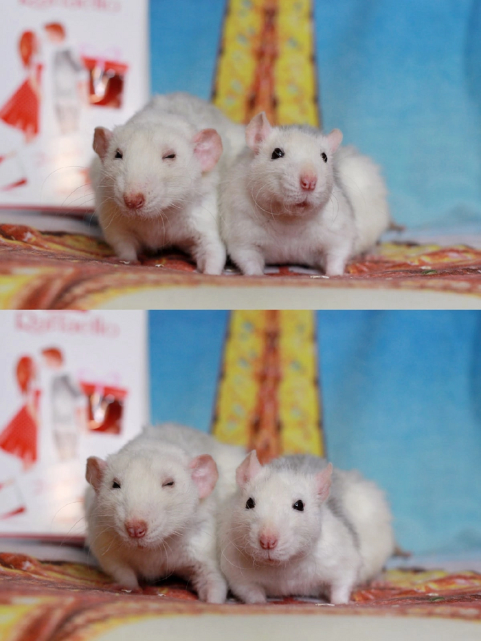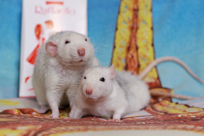 Эта пара крыс вместе с детьми была подкинута в парикмахерскую пару месяцев и забрана оттуда волонтерами Сообщества.
