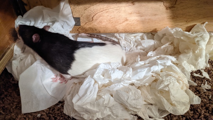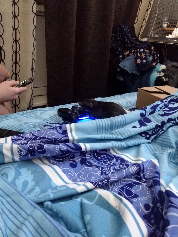 В начале ноября мы резко распрощались с Нейтаном, которому и двух лет не исполнилось. В час ночи он радостный прыгает по кровати, ты играешь с ним фкрысу, а в два ночи находишь в клетке в неестественной позе ещё тёплую тушку. Крыса вообще ничем не болел уже больше года, вскрытие оказалось неинформативным - никаких патологий вот вообще. Все органы в норме, лёгкие были воздушны (т.е. не подавился и не задохнулся), никаких опухолей, абсцессов, инородок... Ничего. Предполагаем, что тромб, но чёрт его... Всё равно периодически задаёшься вопросом "а вдруг я всё-таки что-то не заметила и могла его спасти?"