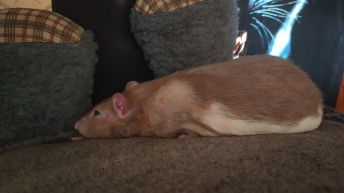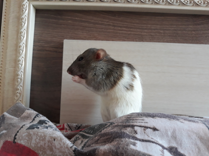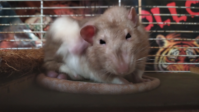 Потом вздорную бабсу забрал один из знакомых крысоводов, стерилизовал и вселил в мужскую стаю. Там она кошмарила уже кота.