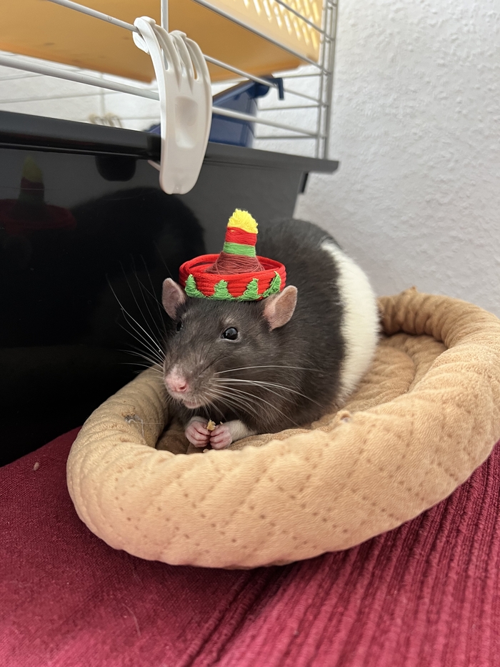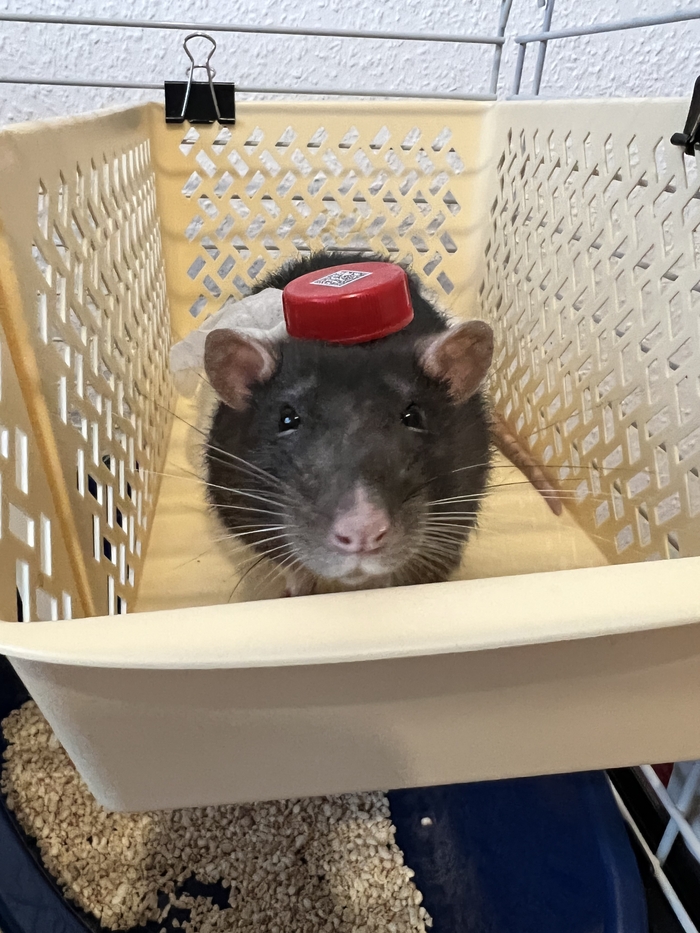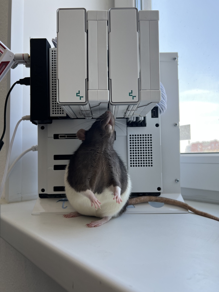 Снова случился у нас крысёныш, маленький прям, но уже резвый. И капец. Он кажись глухой ._.