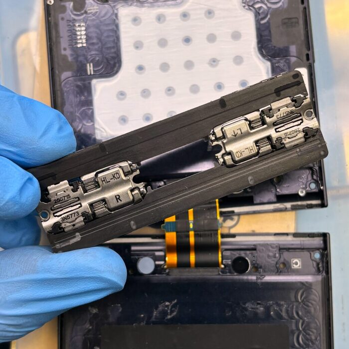Потому что дисплей теперь сидит не только на двухстороннем скотче, но и на герметике, и даже шлейф матрицы залили компаундом — прям как на S25 Ultra.